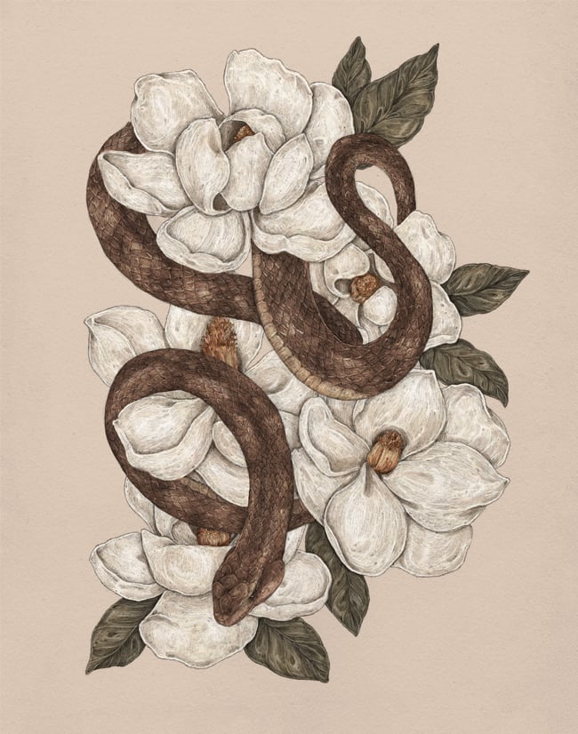 Snake and Magnolias Print