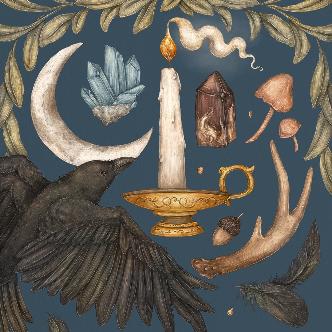 Crow and Crescent Moon Print