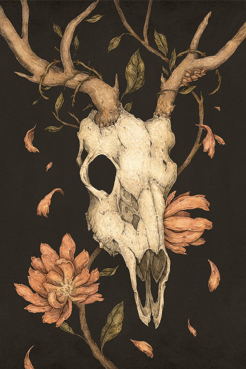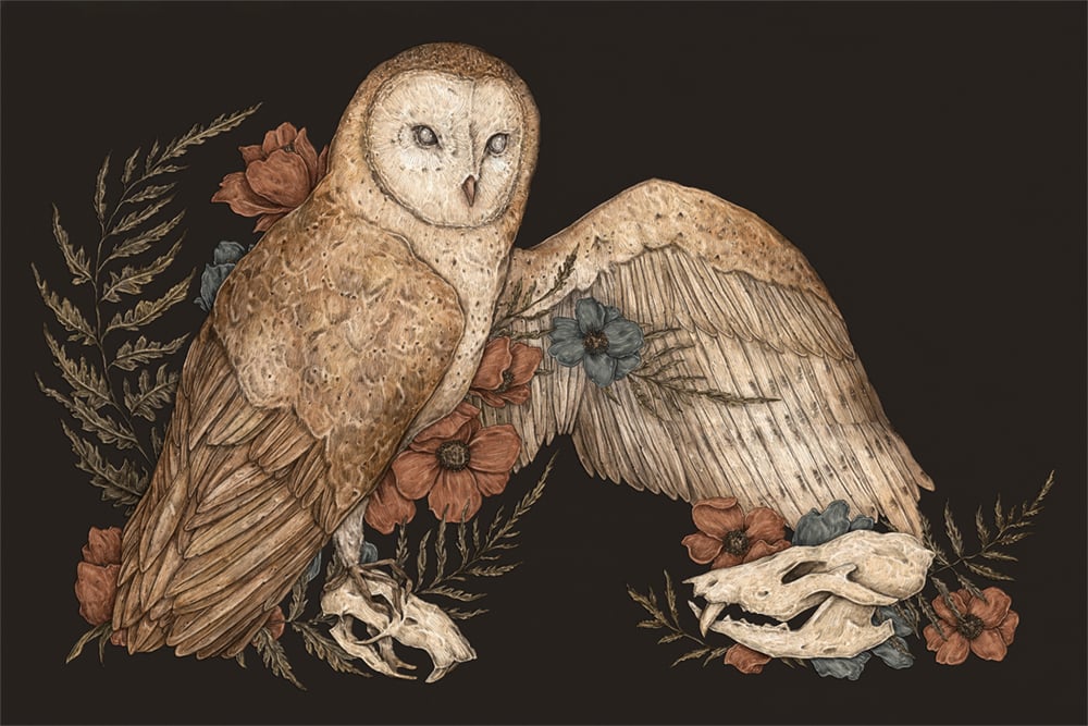 Barn Owl with Skulls Print